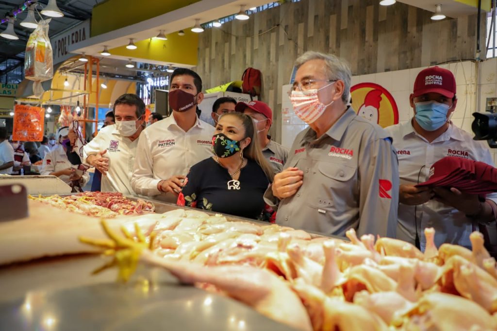 Esta mañana el candidato de la alianza Morena-PAS a la gubernatura, Rubén Rocha Moya visitó el Mercado Pino Suárez, donde dialogó con los locatarios y ofreció continuar con su reforzamiento. Locatarios y clientes del mercado recibieron con entusiasmo y esperanza al abanderado de la alianza Morena-PAS, quien recorrió el centenario y emblemático inmueble saludando uno […]