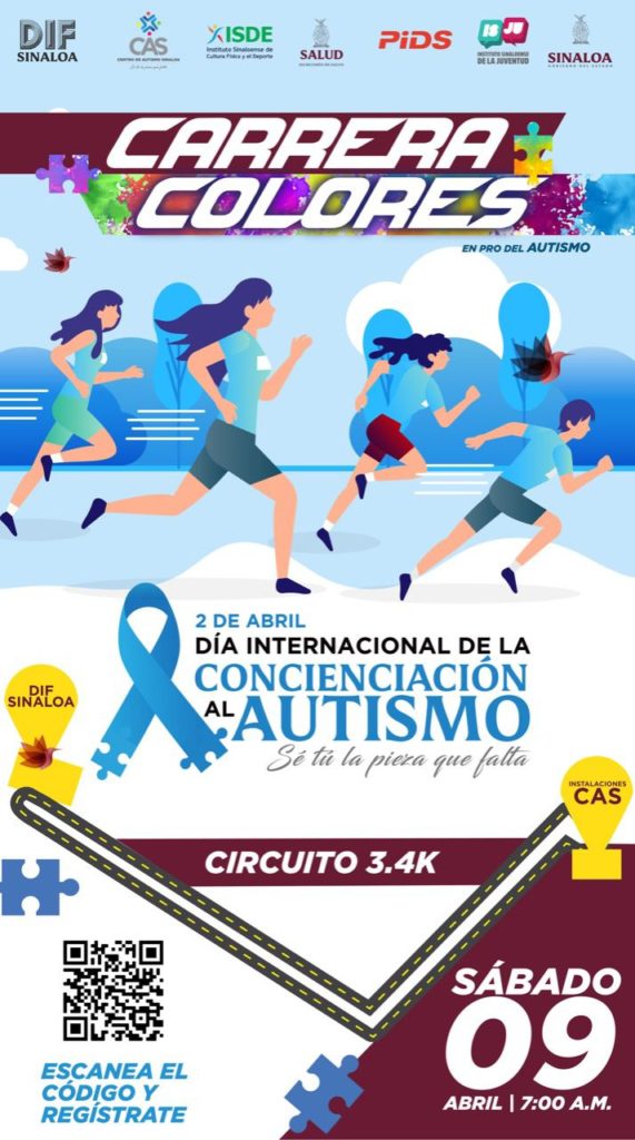 Fomentar el deporte, la convivencia y la inclusión es parte fundamental de las acciones que realiza el sistema DIF Sinaloa, es por ello que invita a la población en general a participar en la “Carrera Colores” en pro del autismo, este sábado 09 de abril a las 7:00 de la mañana. El banderazo de salida […]