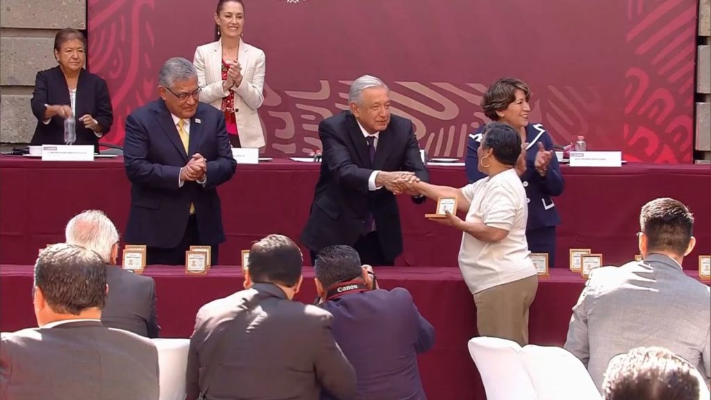 Rocha acompaña a AMLO en la celebración del Día de las maestras y los maestros