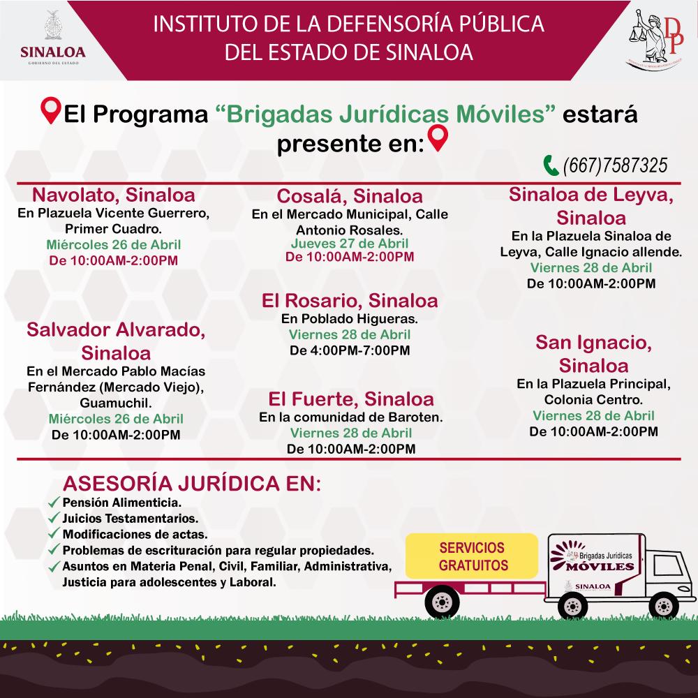 _*A través del Programa «Brigadas Jurídicas Móviles» del Instituto Estatal de la Defensoría Pública se acercarán estos servicios a diversos puntos de la geografía sinaloense._ Culiacán, Sinaloa, a 25 de Abril de 2023.- Como parte de la política estatal de otorgar certeza jurídica en distintos rubros, por instrucciones del Gobernador Rubén Rocha Moya, el Instituto […]