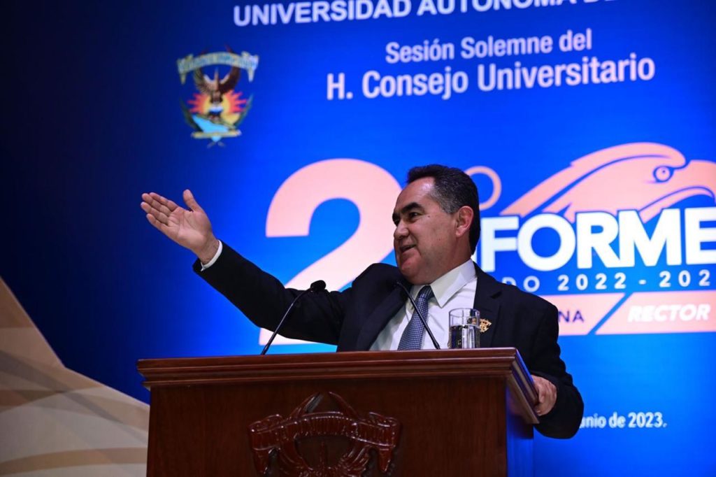 Rector de la UAS doctor Jesús Madueña Molina rinde Segundo Informe de Labores 2022-2023; se cumple con más del 65 por ciento de las metas y se refrenda cohesión en la comunidad Rosalina