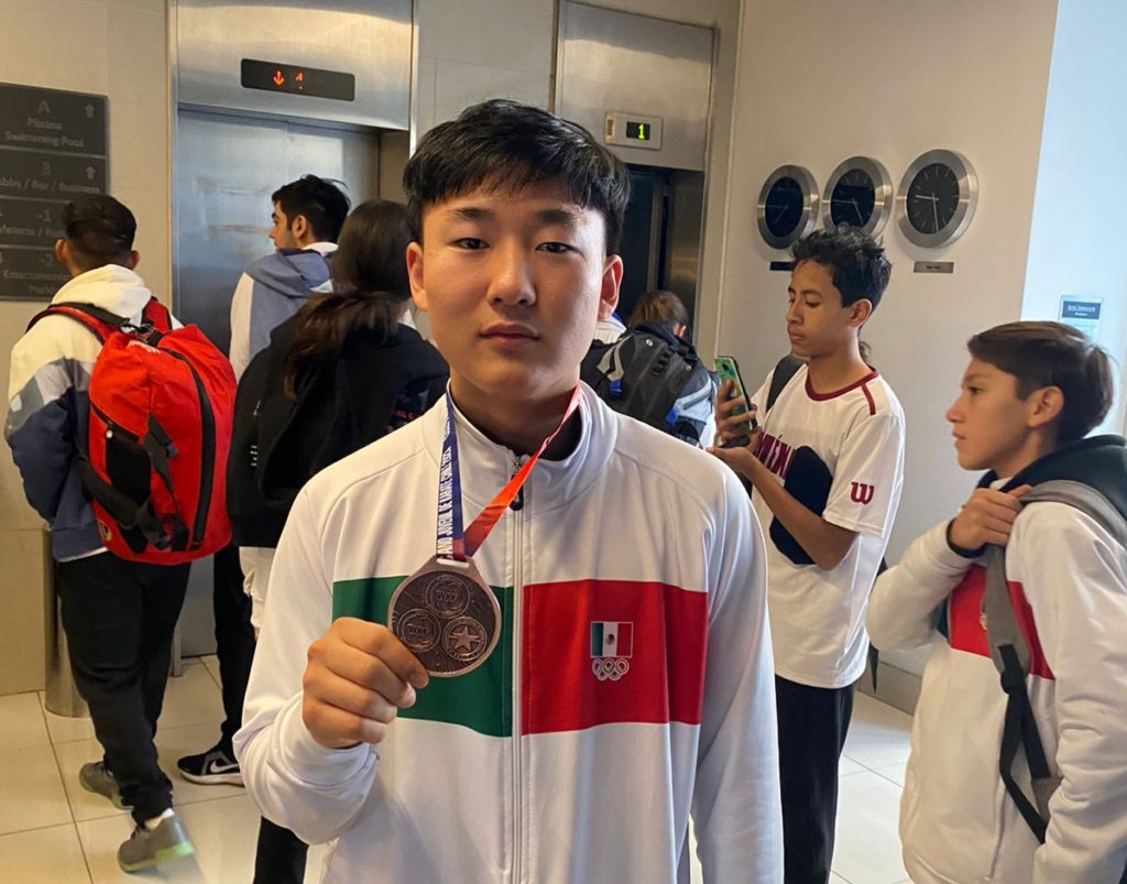 Hayato Yoshii Mizukami se cuelga medalla de bronce a en el Campeonato Panamericano Juvenil de Karate Chile 2023