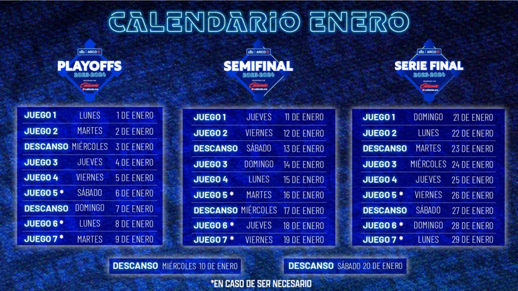 (Comunicación Liga ARCO).-La Liga ARCO Mexicana del Pacífico anuncia el Calendario Oficial de los Playoffs presentados por Caliente.mx, que arrancan el 1 de enero con el año 2024, en busca de un campeón que represente a México en la Serie del Caribe Miami 2024. Los Playoffs presentados por Caliente.mx, se jugarán con el conocido formato […]
