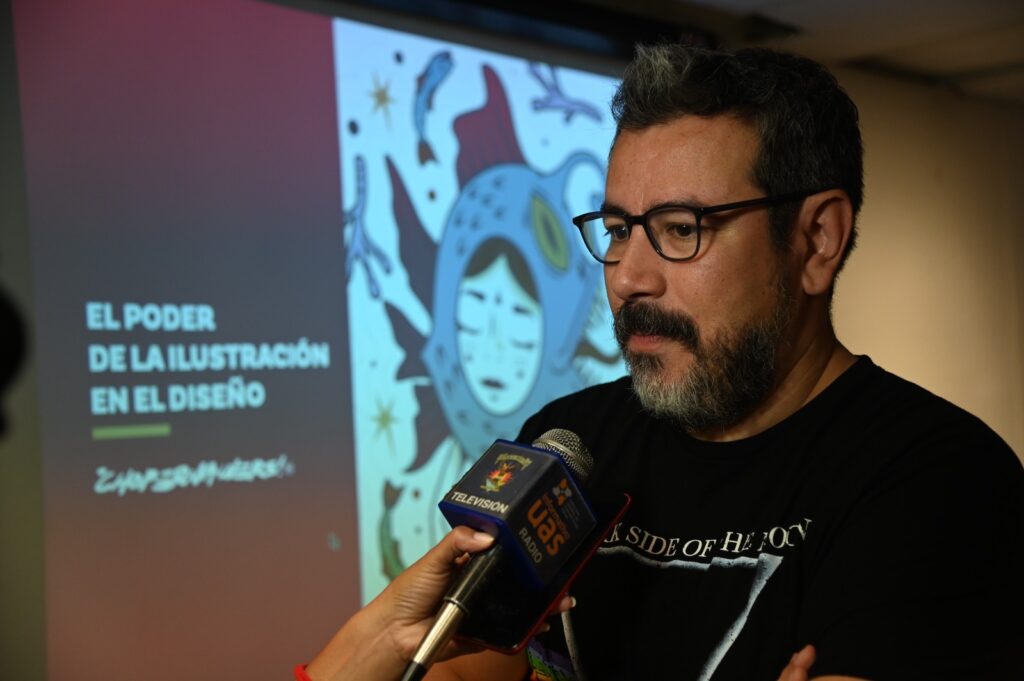 La ilustración, un instrumento importante para comunicar, asegura diseñador gráfico Choper Nawers a estudiantes de la UAS