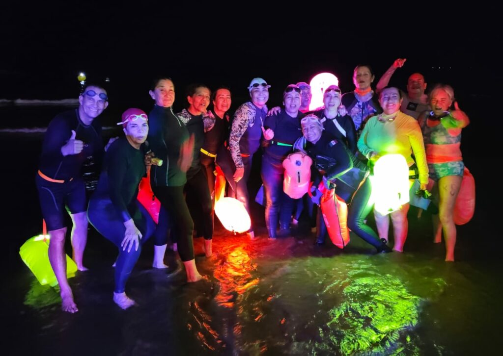 Disfrutan nadadores aventura nocturna en Playa Norte
