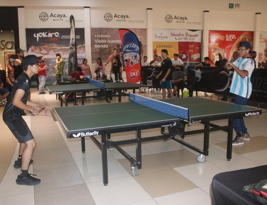 Realizan torneo de tenis de mesa en Plaza Acaya