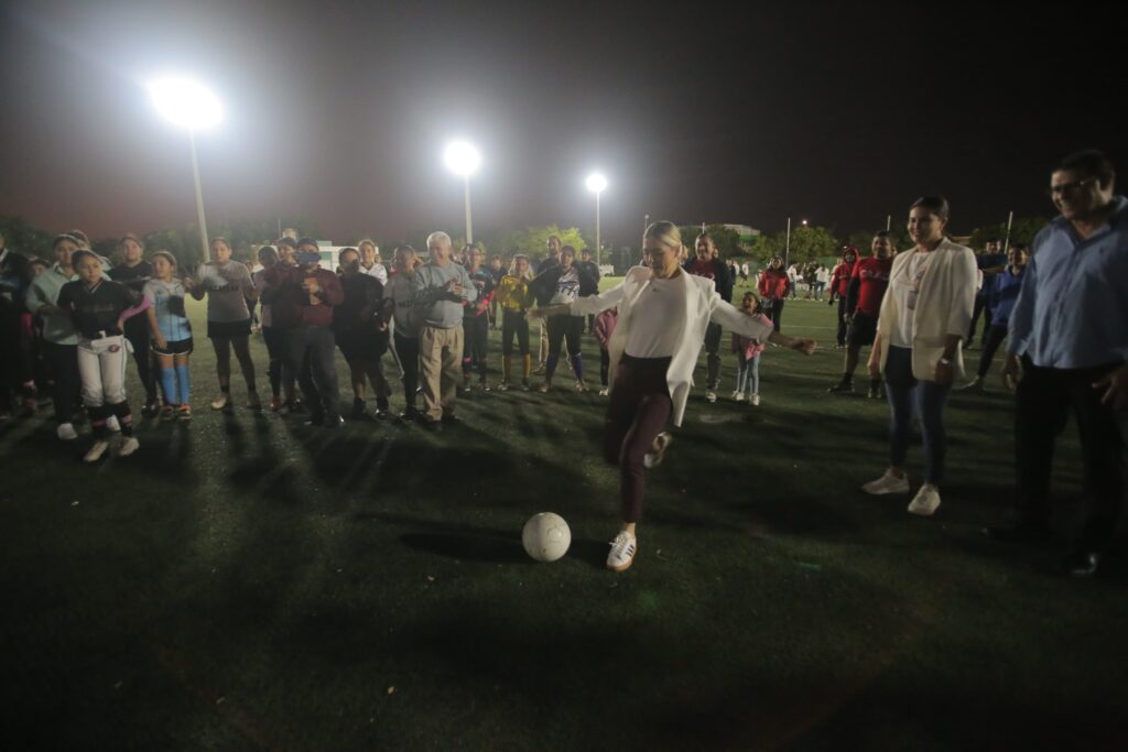 Inaugura Estrella Palacios rehabilitación de campo de fútbol sintético en Unidad Juárez