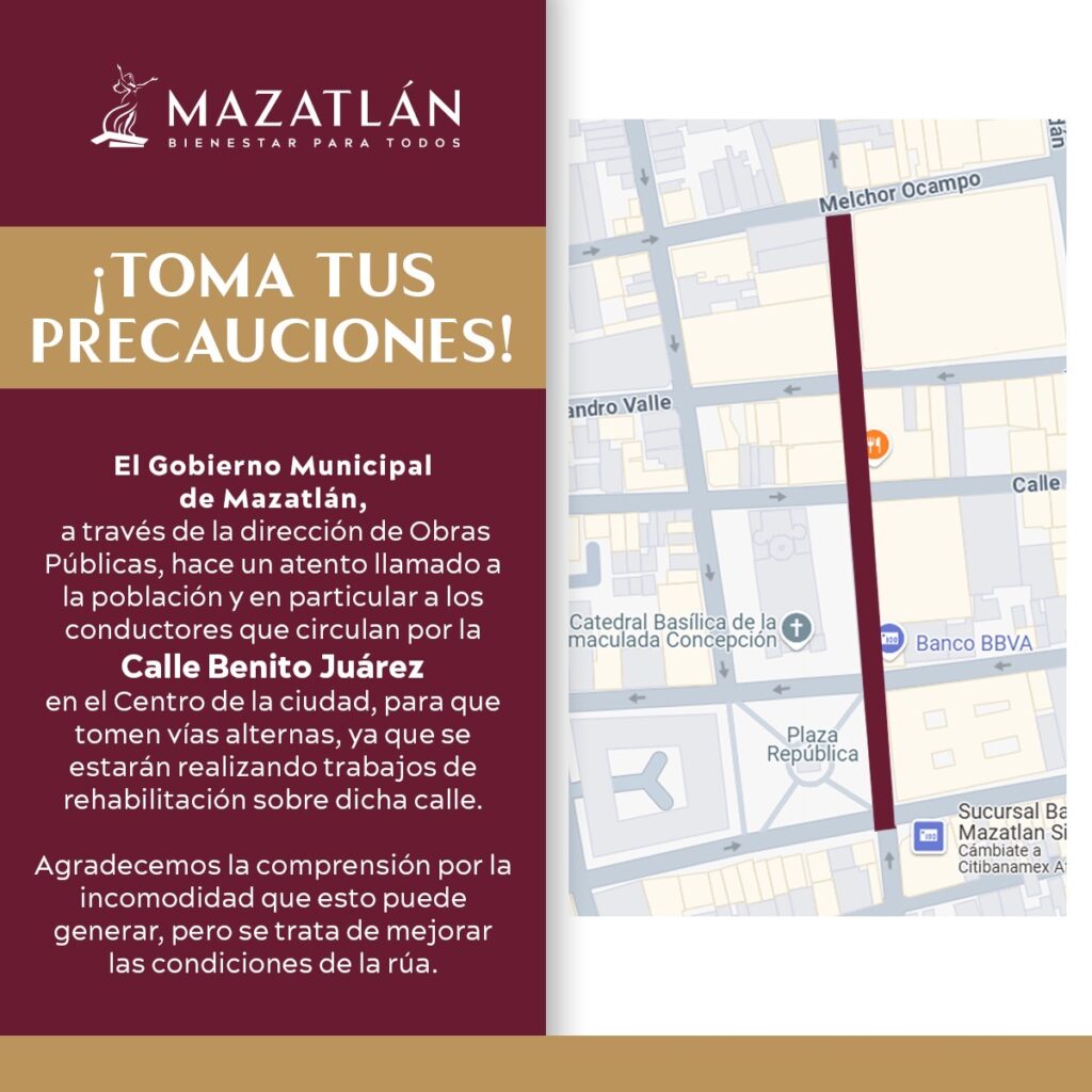 _– La primera fase de reparación de baches se realizará del 19 al 27 de febrero; posteriormente, se abarcará de la calle Ángel Flores a Roosevelt_ Mazatlán, Sinaloa,.. El Gobierno Municipal de Mazatlán, a través de la Dirección de Obras Públicas, hace un atento llamado a la población y en particular a los conductores que […]