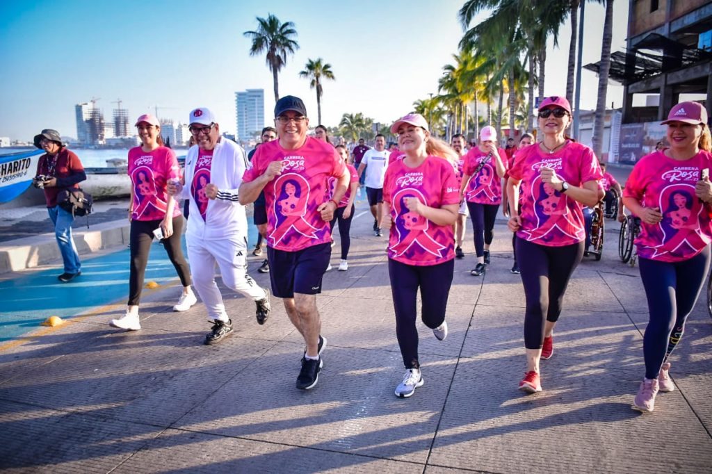 Édgar González, Alcalde de Mazatlán, acompañado de su esposa, María Teresa Apodaca, Presidenta del Sistema DIF Municipal, encabezaron la Carrera Rosa 2023 en el marco del mes de sensibilización sobre el cáncer de mama.