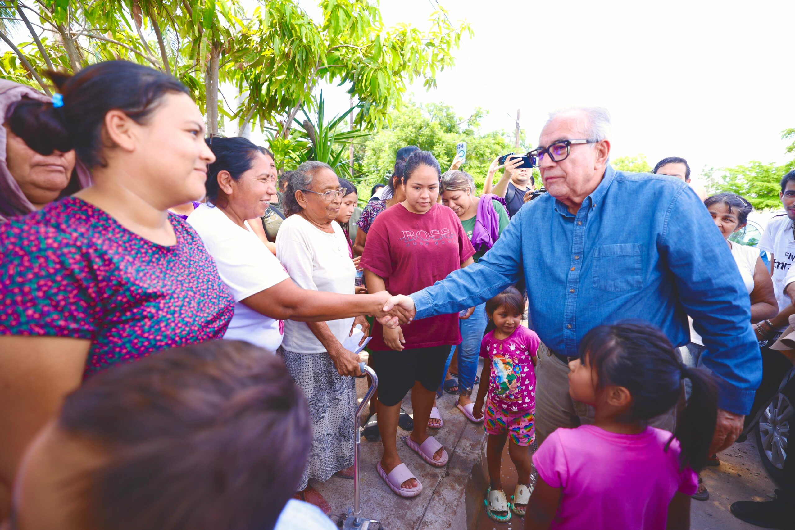 *Nuevo San Miguel, Ahome..* Con el compromiso de estar cerca de la gente y atender sus necesidades, el gobernador Rubén Rocha Moya, visitó las comunidades de Nuevo San Miguel, Santa Teresita y Goros, en Los Mochis, que resultaron afectadas por las fuertes lluvias registradas en la zona el día de ayer, a fin de constatar los daños ocasionados, así como supervisar el levantamiento del censo de afectados y entregar apoyos materiales a las familias.