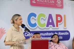 Mazatlán, Sinaloa.– Trabajar por la primera infancia es hablar de justicia social, para darles la seguridad a cada niña y cada niño, para que tengan la oportunidad de crecer sanos, amados y con las condiciones necesarias para alcanzar su máximo potencial, enfatizó la Presidenta Estrella Palacios Domínguez, al inaugurar el primer Centro Comunitario de la Primera Infancia (CCAPI) en Mazatlán, en las instalaciones de Casa Hogar Municipal, en la colonia Constitución.