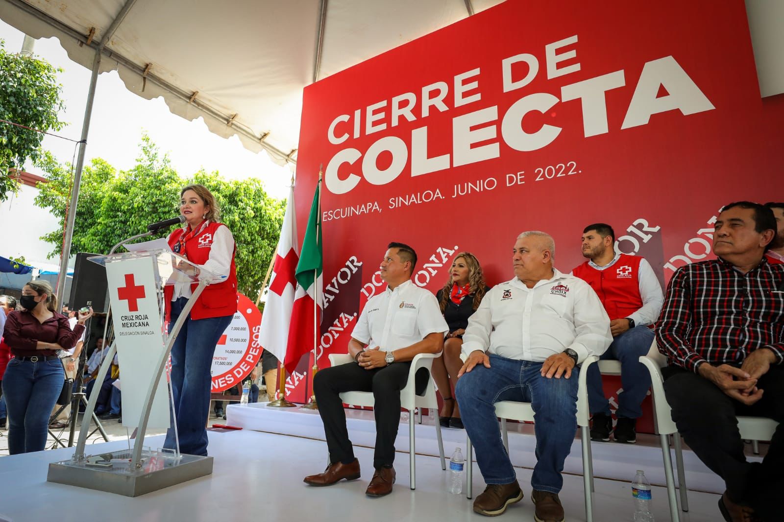 *Escuinapa, Sinaloa 21 de junio del 2022-.* La presidenta honorífica de cruz roja Sinaloa, Dra. Eneyda Rocha Ruiz, quien también es presidenta del Sistema DIF Sinaloa, acudió al cierre de la colecta de cruz roja 2022 que se llevó a cabo en el municipio de Escuinapa.