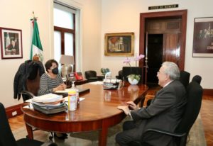 Ciudad de México, miércoles 14 de julio de 2021. – Con la finalidad de dignificar las condiciones de infraestructura de las escuelas en las que niñas, niños, adolescentes y jóvenes de la entidad reciben educación, el gobernador electo de Sinaloa Rubén Rocha Moya se reunió con la titular de la Secretaría de Educación Pública (SEP), Delfina Gómez Álvarez, para solicitarle incluir la mayor cantidad de centros educativos en el programa La Escuela es Nuestra.