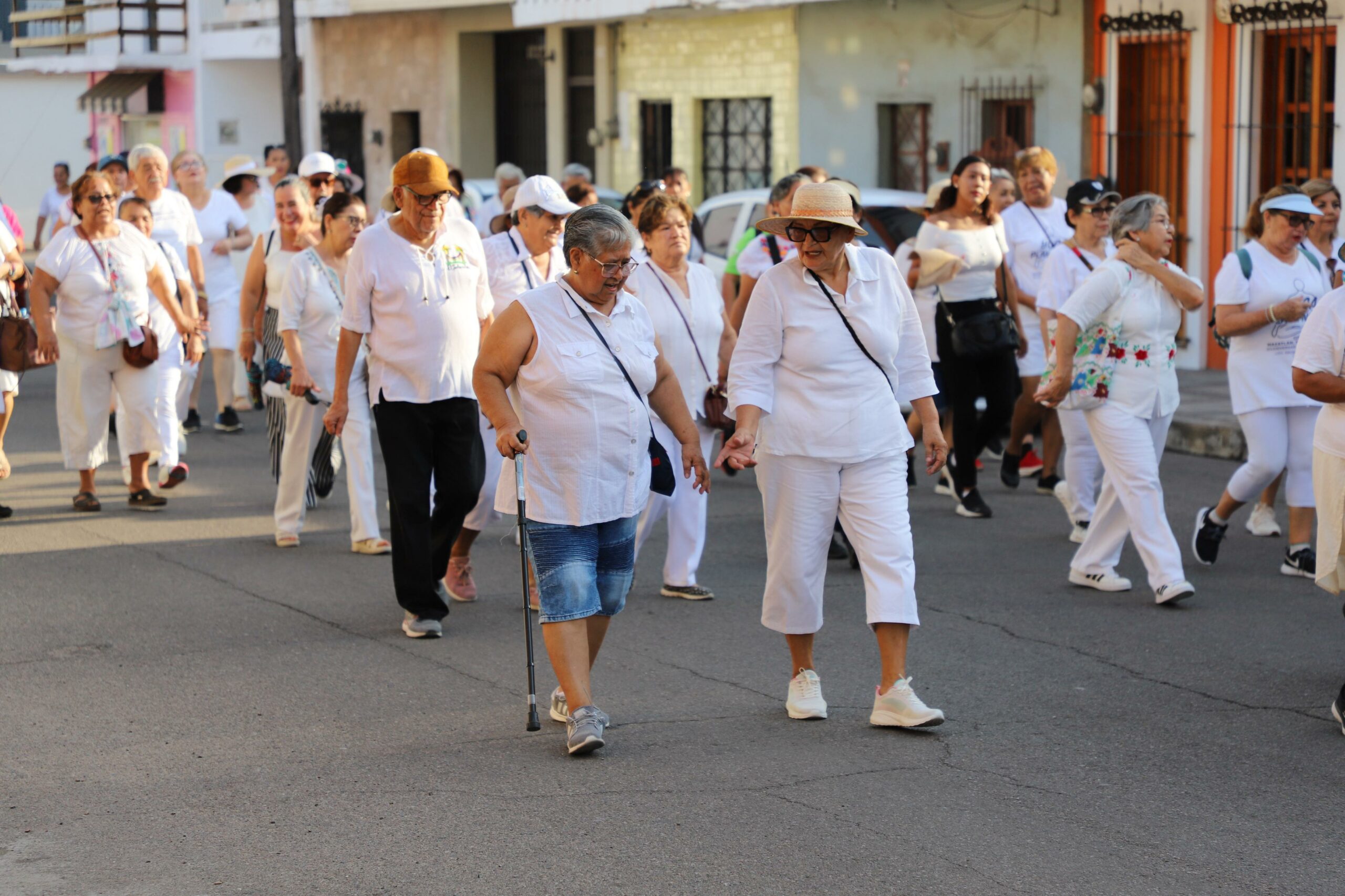Y así, en medio de una fiesta de emociones, las y los adultos mayores se sumaron a una caminata recreativa que inició en el monumento Al Pescador y culminó en la plazuela Zaragoza.