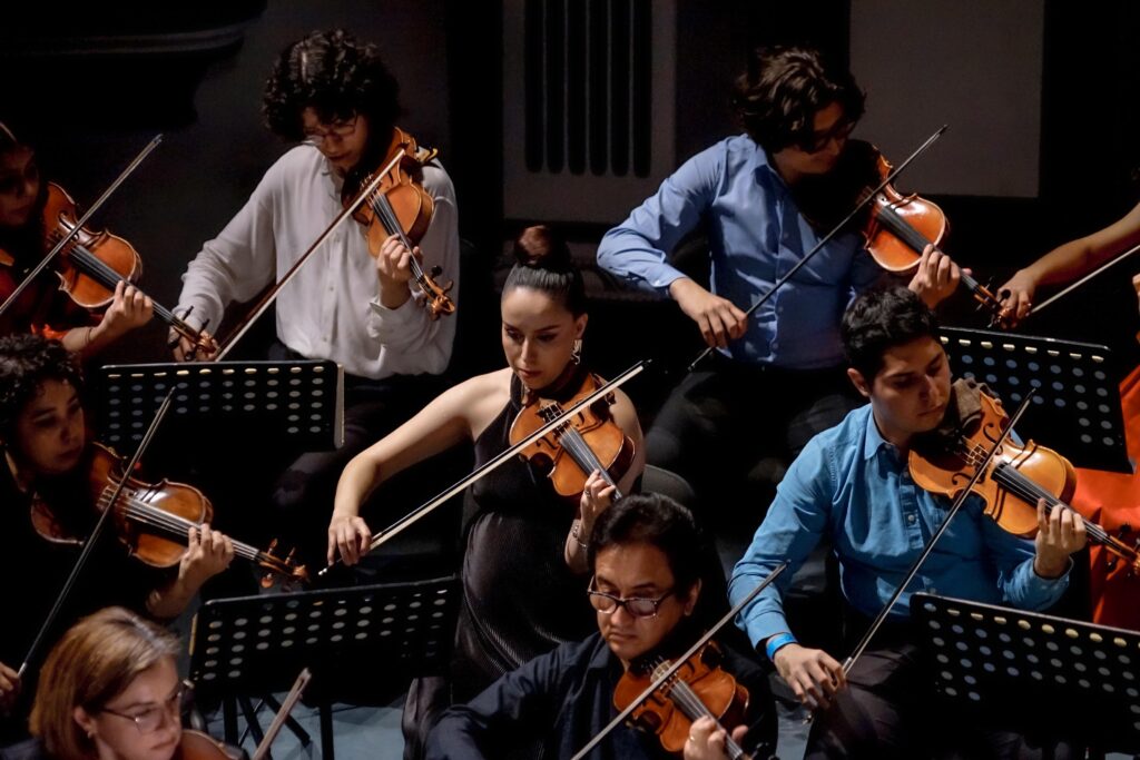 El Maestro Campbell expresó su felicidad por contar con la presencia de tres consentidas: Nina Farvarshchuck, concertino de la Camerata Mazatlán; Magdalena Hernández, concertino de la Orquesta de Aguascalientes, y la joven violinista Amitai de la Luna Sandoval.