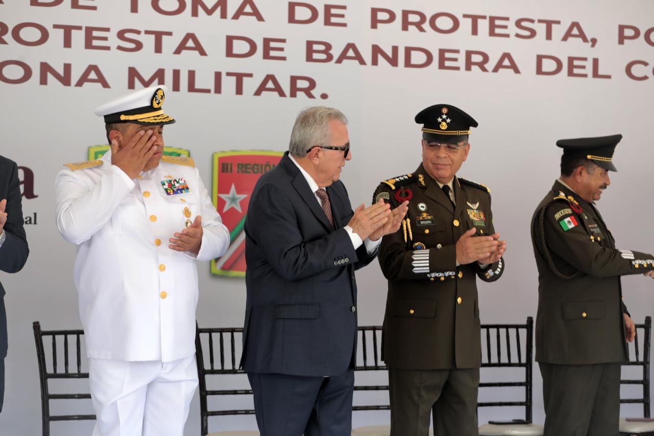 Por su parte el gobernador Rocha recibió al nuevo Comandante afirmando, “Ahora viene el General Santos Gerardo Soto y lo recibimos con el aprecio y con la seguridad de que vamos a trabajar de manera coordinada para efecto de atender los problemas que competen a ellos y a nosotros”, dijo.