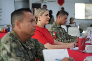 Mazatlán, Sinaloa.– La reunión de la Mesa Regional de Seguridad y Construcción de la Paz contó con la presencia de la Presidenta Estrella Palacios Domínguez, como parte del análisis y valoraciones de las estrategias interinstitucionales para construir el tejido social.