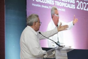 Mazatlán, Sinaloa, a 17 de mayo del 2022.- En compañía de la coordinadora nacional de Protección Civil, Laura Velázquez Alzúa, y del director de la Conagua, Germán Martínez Santoyo, el gobernador Rubén Rocha Moya encabezó la Reunión Nacional de Protección Civil “Temporada de Lluvias y Ciclones Tropicales 2022”, donde destacó que el autocuidado y la protección civil es tarea de todos, pues el bien primordial que debe cuidarse es la vida, en casos de desastres naturales y fenómenos meteorológicos.