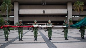 En el lugar, las autoridades presentes rindieron el distintivo homenaje acompañados del 94/0 Batallón de Infantería de la 9na. Zona Militar, el cual ejecutó el himno nacional mexicano.