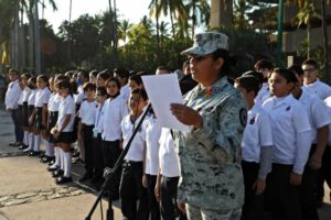 Tras terminar los Honores a los símbolos patrios, Rocío Alicia Pérez Rojas, miembro de la Guardia Nacional dio una breve lectura sobre las efemérides del mes de diciembre.