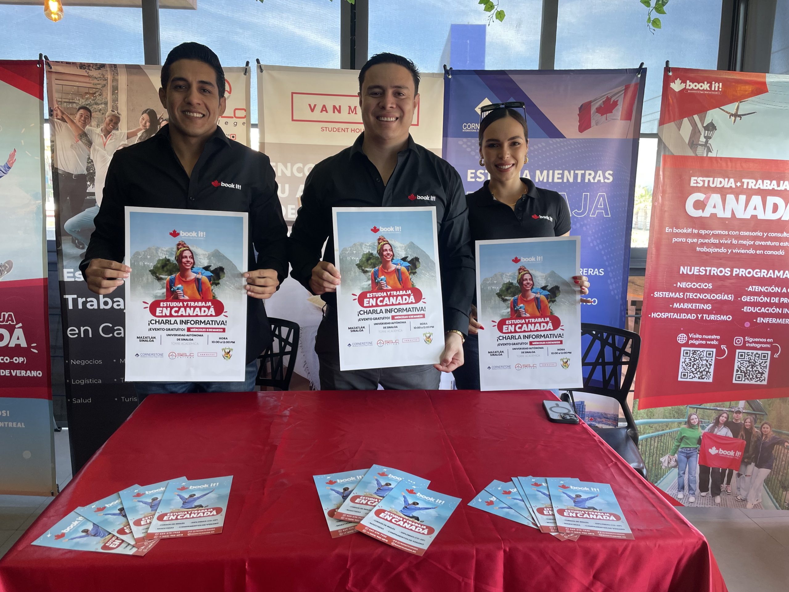 Juan Bogarín, Erick Magaña y Marifer Trujillo dueños de la franquicia y agencia Book it en Mazatlán ofrecen a jóvenes estudiantes la oportunidad de vivir, estudiar y trabajar en Canadá.
