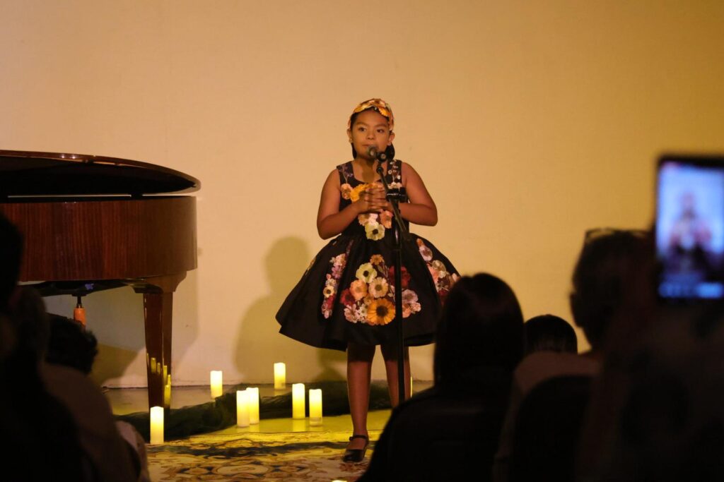 La sala se encendió con la presencia de la niña Ángela Salazar, Reina Infantil del Carnaval Internacional de Mazatlán 2025, quien llenó de ternura el ambiente al interpretar con gran talento «La Bikina». Su actuación fue aún más especial al incorporar elegantes movimientos de flamenco realzados por el uso de abanicos.