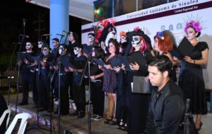 Ciudad Universitaria se revistió de colores, música y algarabía en la tradicional Callejoneada por el día de muertos organizada por la Coordinación General de Extensión de la Cultura Zona Sur de la Universidad Autónoma de Sinaloa.