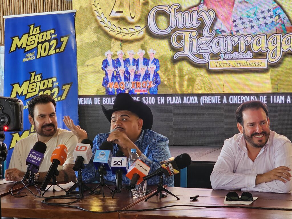 Mazatlán, Sinaloa.- El cantante del regional mexicano Chuy Lizárraga y su banda Tierra Sinaloense está de manteles largos, por sus dos décadas de trayectoria musical.