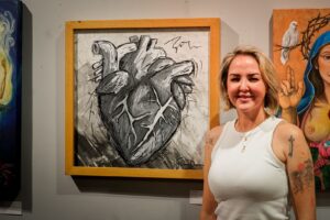 Entre las obras se encuentran retratos simbólicos, naturalezas reinventadas, corazones e iconografías religiosas reinterpretadas, figuras marinas y piezas tridimensionales que sorprenden por su fuerza visual y conceptual.