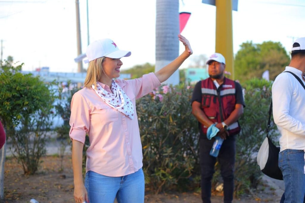 La tarde de este miércoles la abanderada morenista continuó con su actividad proselitista en el crucero de Av. Jacarandas y Clouthier y posteriormente realizó el toque de puertas en el Fracc. Pradera Dorada 6.