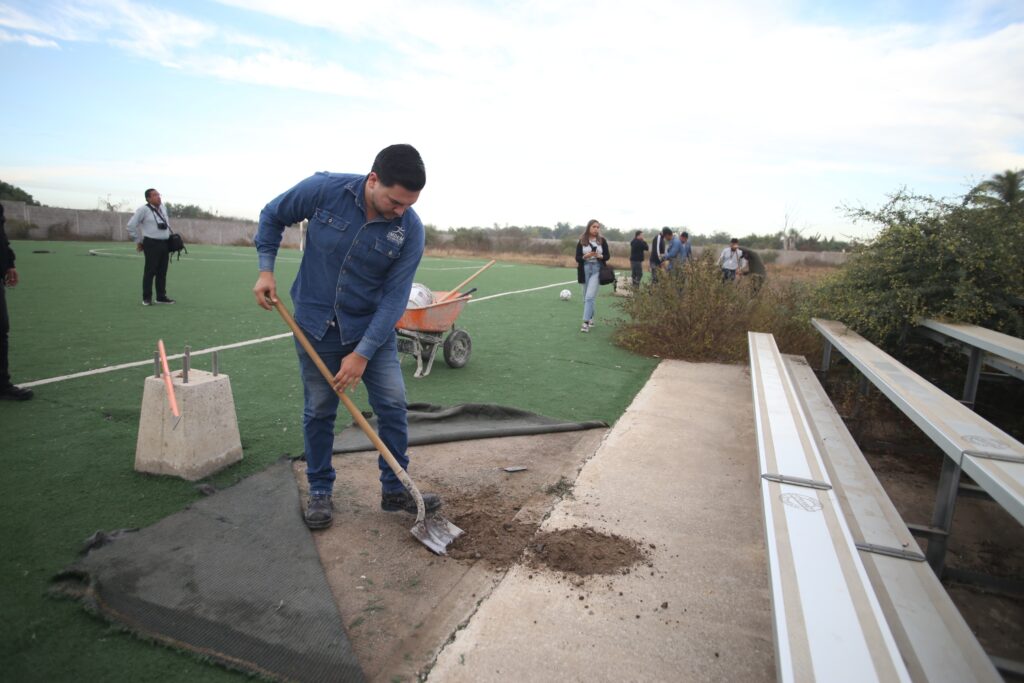 “Este será un nuevo centro deportivo que tendremos en Mazatlán. Estamos muy contentos de anunciarles que estamos haciendo rehabilitaciones, para que además de tener esta cancha de fútbol, vamos a tener aquí dos canchas más de sóftbol, la cancha de básquetbol se va a adaptar para que también funja como cancha de béisbol 5 y como cancha de voleibol, así que va a ser un gran centro deportivo, vamos a tener más bancas, vamos a rehabilitar para que se tengan acceso a los baños, que están aquí enseguida de las oficinas del DIF”, detalló.