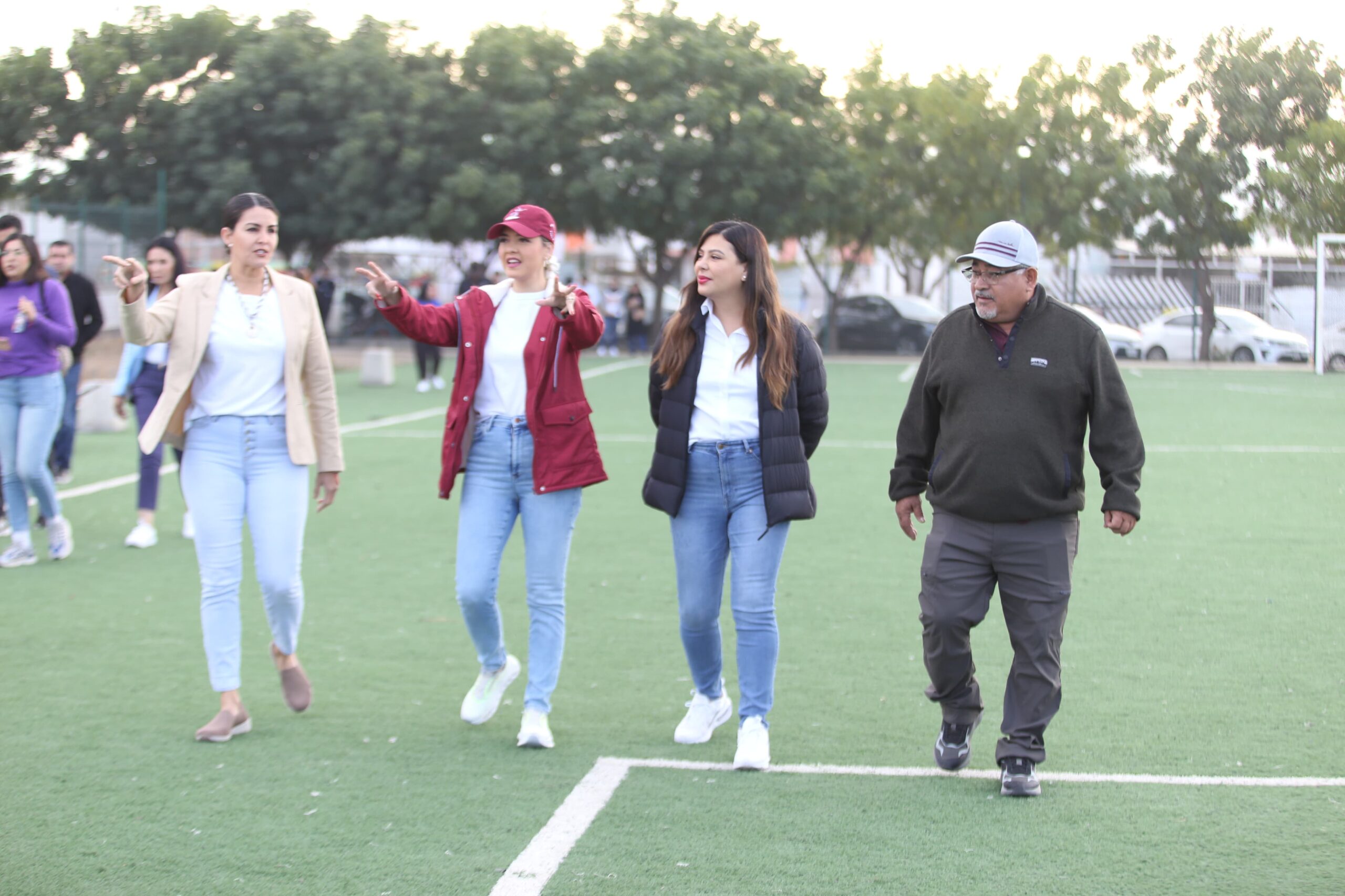 “Este será un nuevo centro deportivo que tendremos en Mazatlán. Estamos muy contentos de anunciarles que estamos haciendo rehabilitaciones, para que además de tener esta cancha de fútbol, vamos a tener aquí dos canchas más de sóftbol, la cancha de básquetbol se va a adaptar para que también funja como cancha de béisbol 5 y como cancha de voleibol, así que va a ser un gran centro deportivo, vamos a tener más bancas, vamos a rehabilitar para que se tengan acceso a los baños, que están aquí enseguida de las oficinas del DIF”, detalló.