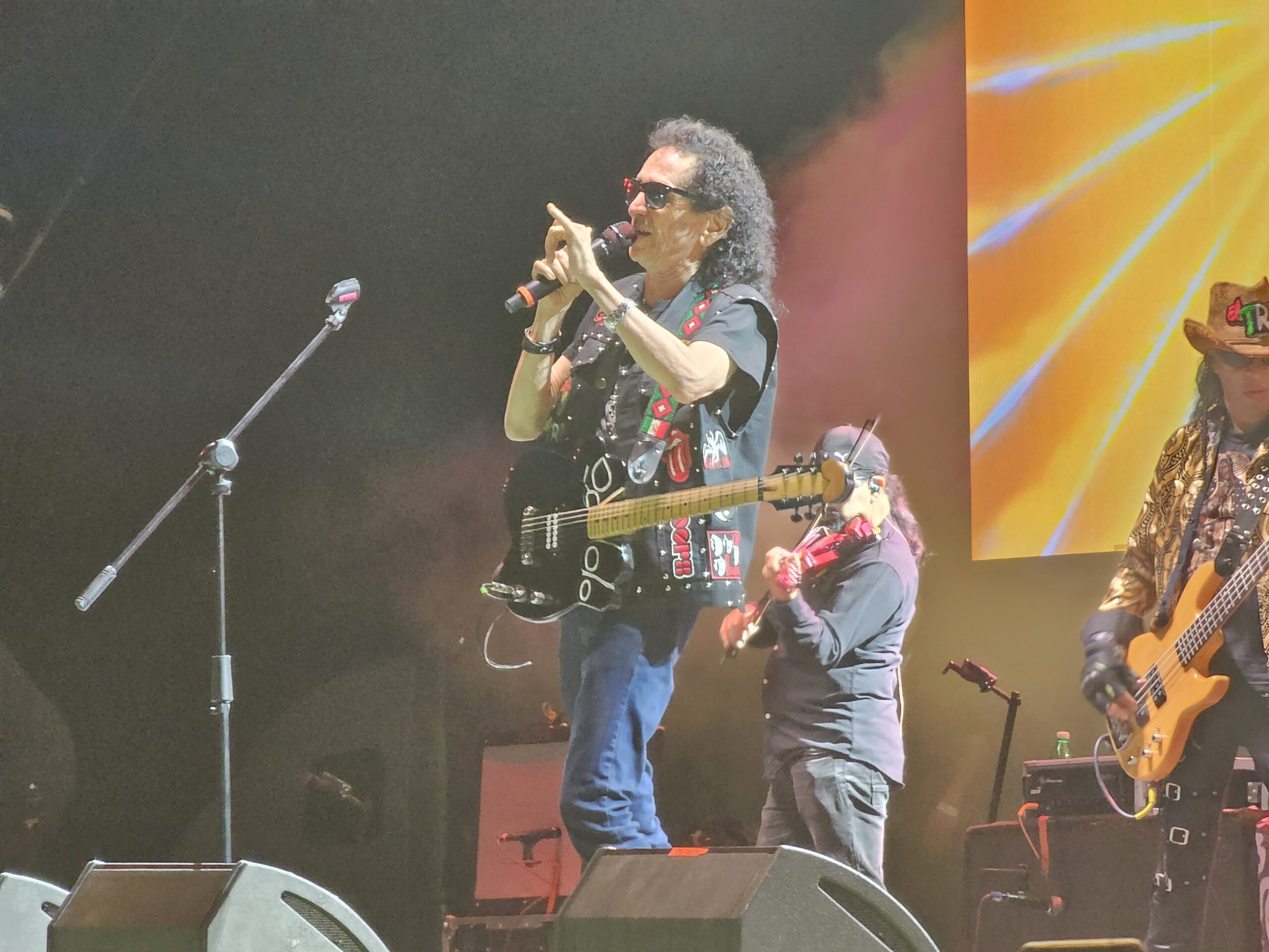 Con sus inseparables lentes oscuros y guitarra eléctrica y peculiares rizos, el cantante salió al escenario y arrancó el concierto con su frase que viva el rock and roll.