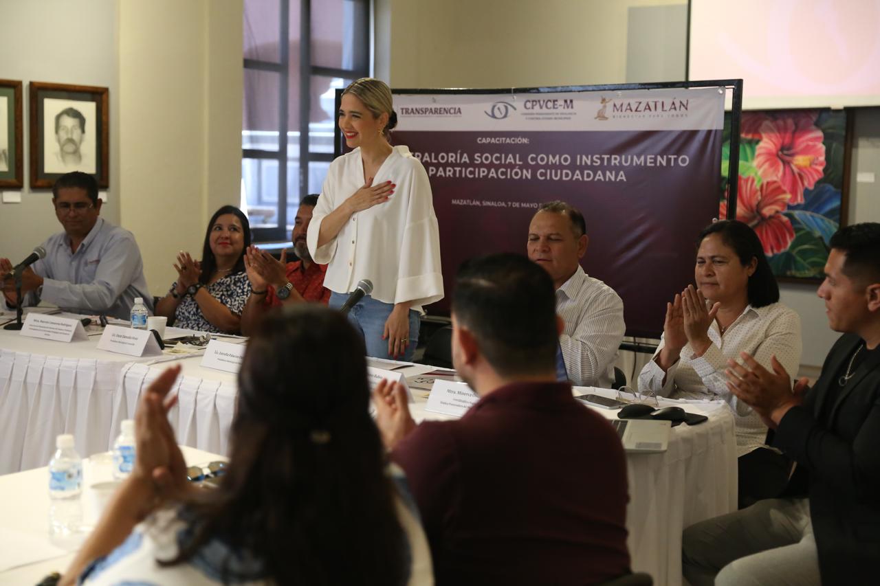 La Presidenta Municipal, Estrella Palacios Domínguez, dio la bienvenida al Director de Contraloría Social y Secretario Técnico de la CPVCE-M, José Pedro Álvaro Robles Medina, la Directora de Planeación del Sistema DIF Sinaloa y capacitadora, Marcela Camarena Rodríguez, así como a los síndicos procuradores, titulares de los órganos internos de control, contralores sociales y representantes de los ayuntamientos de Elota, San Ignacio, Concordia, Rosario, Escuinapa y el anfitrión, Mazatlan.