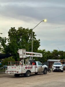 La Directora de Servicios Públicos, Karla Angélica Camacho Guzmán, detalló que en El Conchi se instalaron 109 lámparas LED, de 74 y 55 watts; en Santa Sofía, fueron 11 luminarias de 74 watts; y en Arrecifes, correspondieron 33, de 150 y 74 watts; asimismo, se repusieron 600 metros de cableado; los trabajos duraron seis días, participaron 72 personas, con apoyo de tres grúas y una pick up.