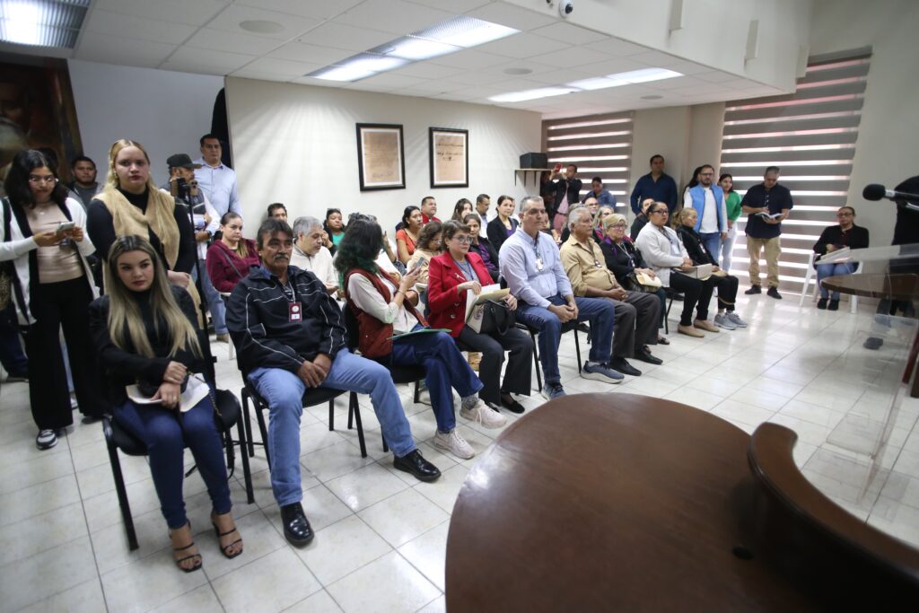 La Presidenta de Mazatlán, Estrella Palacios Domínguez, dio la palabra a los representantes de los asentamientos en la Sala de Cabildo, en presencia de las y los regidores, la Síndica Procuradora, Minerva Osuna Zavala, y el Secretario del Ayuntamiento, Moisés Ríos Pérez.
