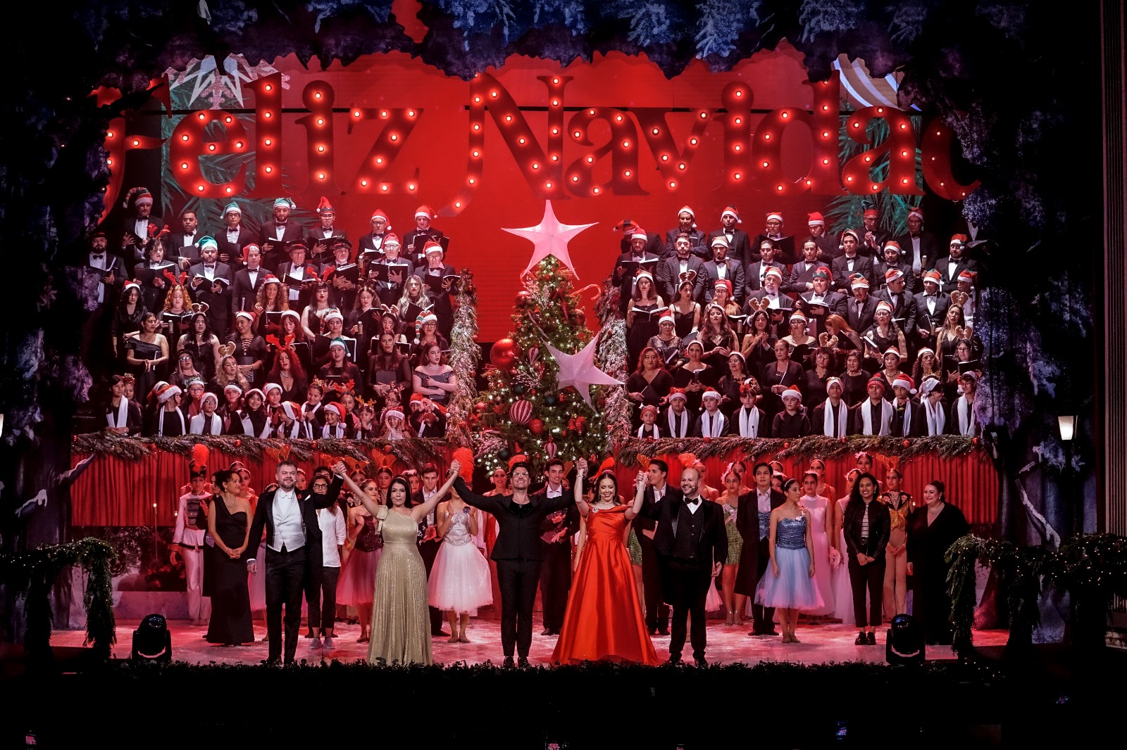 Al estilo Las Vegas, el dueto formado por Sarah Holcombe y Penélope Luna, cantaron “Merry christmas medley”, acompañadas por alumnas de la Escuela de Ballet que danzaron como bastoneras brindando un bello espectáculo. “God bless you” cantada por el tenor Andrés Carrillo marcó el final de esta producción de Raúl Rico González y Abril Márquez, en la cual el actor Ramón Gómez Polo tuvo participación especial al recordar el bello mensaje navideño del pequeño Tim y su famosa frase “Dios bendiga a todos, uno por uno” (God bless us, ever one) del cuento “Canción de Navidad de Charles Dickens.