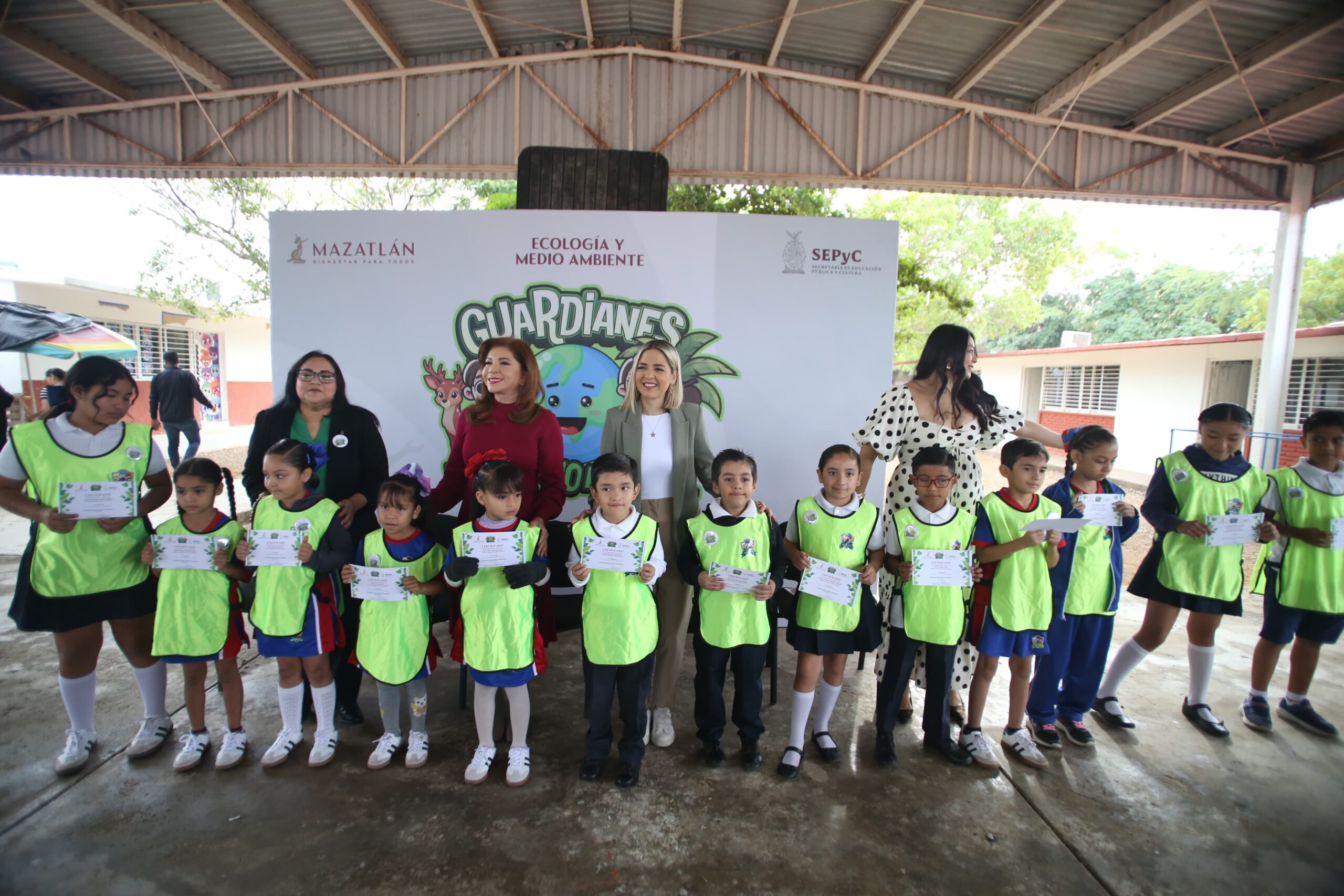 Mazatlán, Sinaloa.- Con el compromiso de cuidar los recursos naturales, reducir y reciclar los residuos sólidos, proteger el medio ambiente y la biodiversidad de Mazatlán, la Presidenta Municipal, Estrella Palacios Domínguez, y la Secretaría de Educación Pública y Cultura (SEPyC) de Sinaloa, Gloria Himelda Félix Niebla, pusieron en marcha el programa Guardianes del Medio Ambiente en la Escuela Primaria Federal Insurgentes, ubicada en la colonia del mismo nombre de la ciudad, el cual fue creado por la Dirección de Ecología y Medio Ambiente del Ayuntamiento.