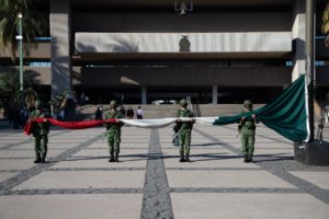 Con el fin de conmemorar el aniversario 84 de la Expropiación Petrolera, autoridades civiles y militares rindieron tributo a este importante suceso de la vida nacional, con un izamiento de bandera a toda asta con Honores de Ordenanza en la plaza cívica de Palacio de Gobierno.