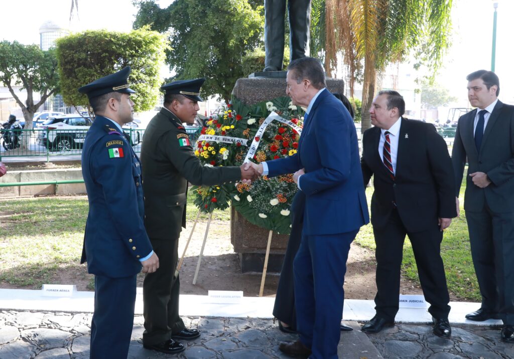El funcionario estatal estuvo acompañado de la Diputada Erika Martínez, Jesús Iván Chávez Rangel Presidente del Supremo Tribunal de Justicia, José Ernesto Peñuelas Secretario del Ayuntamiento, Capitán Arnoldo Jiménez Reyes representante de la 9ª Zona Militar, Capitán José Alberto Limón Aguirre representante de la Guardia Nacional en Sinaloa, Piloto Aviador Antonio de Jesús Martínez representante de la Fuerza Aérea Militar en Sinaloa, así como, invitados especiales, jefes, oficiales y tropas castrenses.
