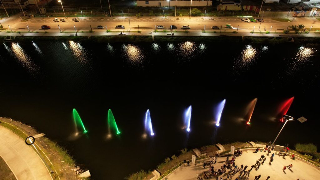 Las fuentes danzantes le vienen a dar color y más alegría al lugar con su iluminación cambiante con tecnología led, en total son siete y lanzan un chorro a presión de hasta 10 metros de altura.