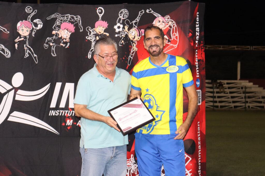 La directora del Instituto Municipal del Deporte Mazatlán, Fabiola Judith Verde Rosas, encabezó la merecida premiación, acompañada del coordinador de Ligas y Clubes, Enrique Rivera Ornelas, Manuel Mancilla Jiménez, presidente del Comité Municipal de Futbol, así como Gil Sandoval, presidente de la Liga.