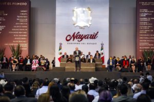 Tras la toma de protesta realizada por la diputada Alba Cristal Espinoza Peña, presidenta de la Comisión de Gobierno del Congreso del Estado, al mediodía de este domingo en el auditorio Amado Nervo, el morenista Navarro Quintero emitió un mensaje en el que exhortó a los servidores públicos integrantes de su gobierno a trabajar con honestidad y transparencia, para “hacer de Nayarit el estado que venza la adversidad”.