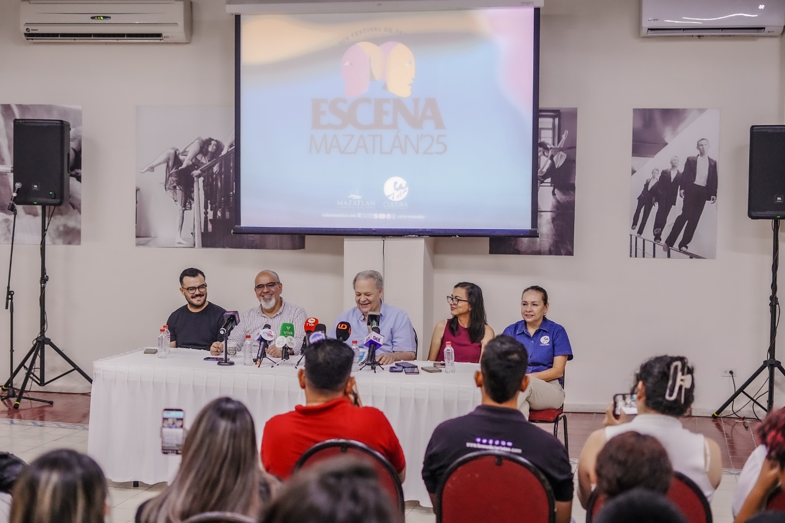 El programa de actividades de Escena Mazatlán fue dado a conocer por Rico González, director de Cultura; los maestros Ramón Gómez Polo y Manolo Díaz, figuras relevantes de la escena local; Karla Aguirre, directora de Multimedia y Abril Márquez, directora artística del Instituto Municipal de Cultura.