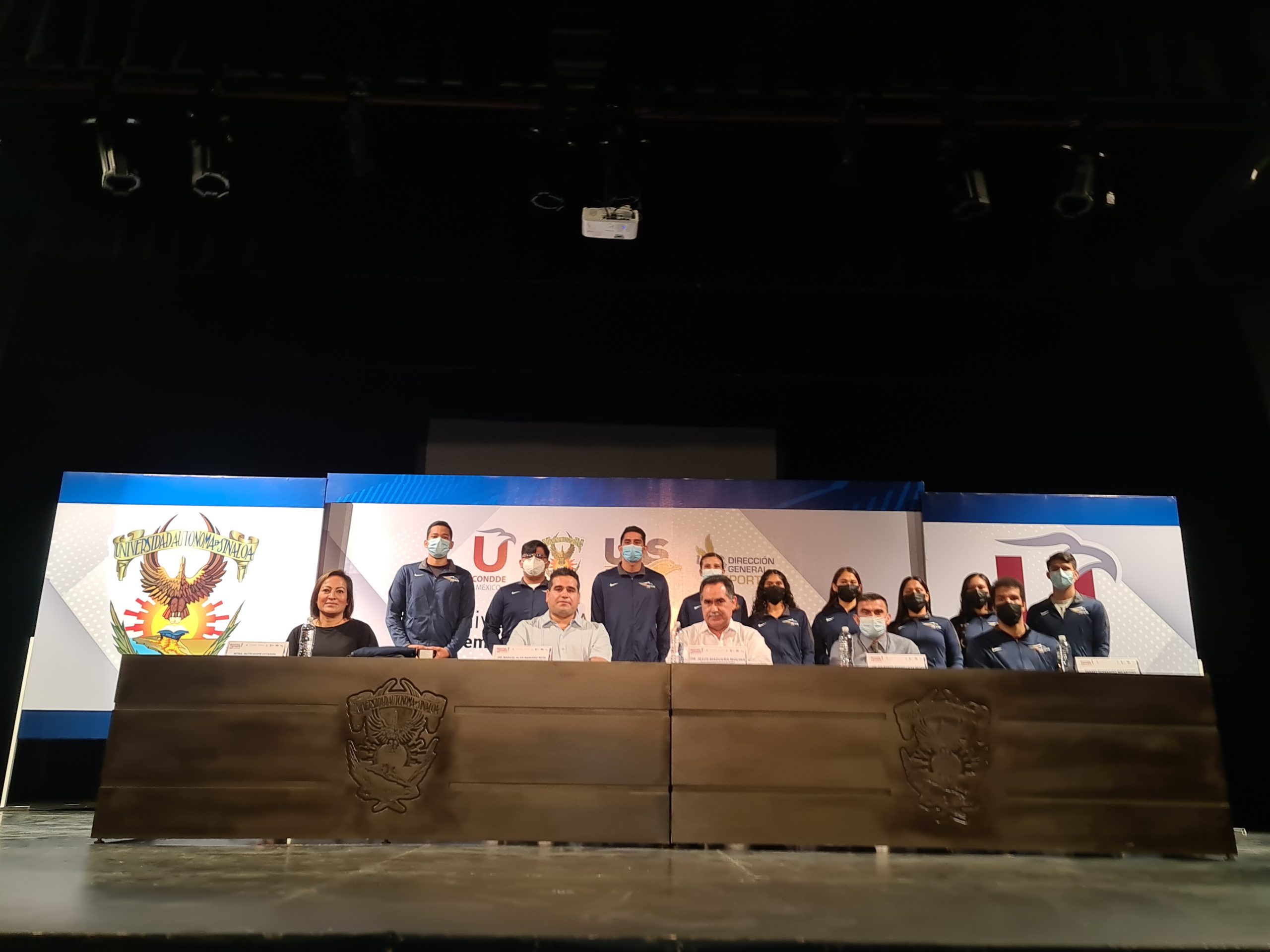 En la ceremonia, el Rector de la universidad, Jesús Madueña Molina entregó como obsequio a Manuel Alan Merodio Reza, Secretario de la Condde un uniforme Selección Oficial de la UAS.