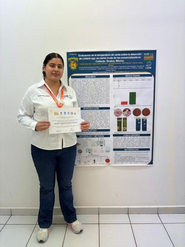 Ana Patricia Castro Díaz, estudiante de la Facultad de Ciencias Químico Biológicas de la Universidad Autónoma de Sinaloa (UAS) ganó el reconocimiento del mejor poster en el XXVII Congreso Latinoamericano de Microbiología, evento realizado en Santo Domingo, República Dominicana, hecho que representa un orgullo y demuestra que en la casa rosalina se forma a jóvenes con talento y amor por la ciencia desde etapa temprana, destacó la doctora Maribel Jiménez Edeza.