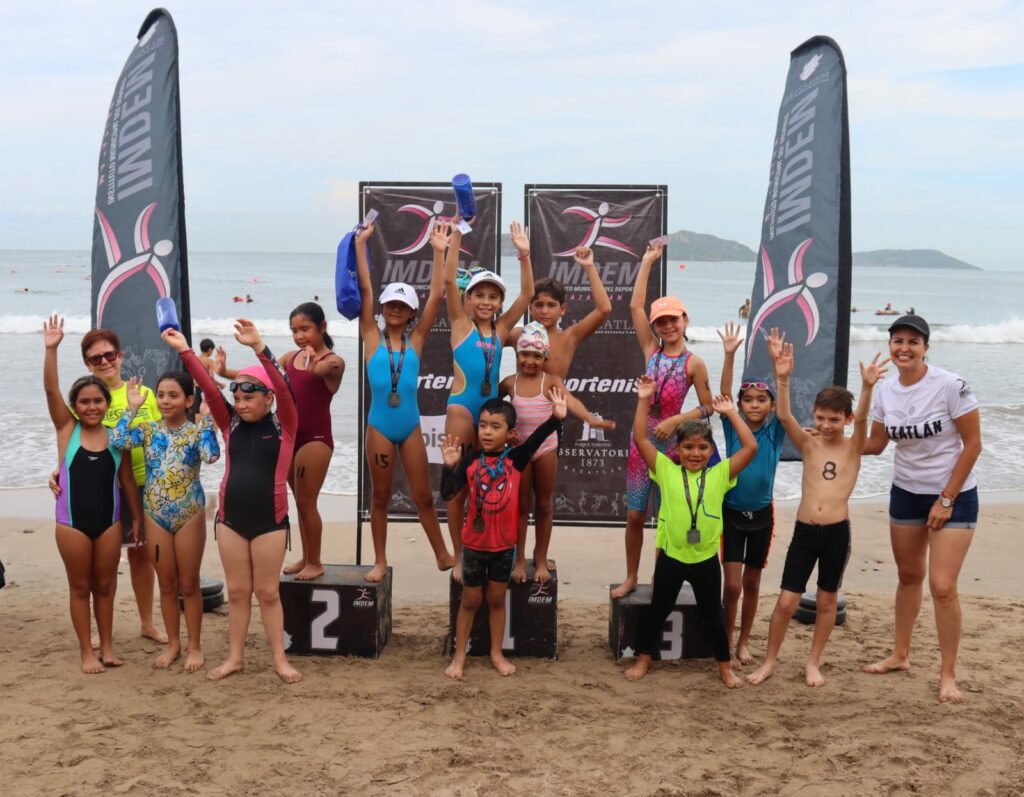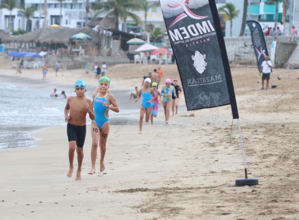 Mazatlán, Sinaloa.- La fusión de diferentes disciplinas en la playa gustó mucho a los niños participantes del «Corre, Nada y Diviértete», organizado por el Comité Municipal de Natación y el Instituto Municipal del Deporte Mazatlán, frente al Monumento al Pescador.
