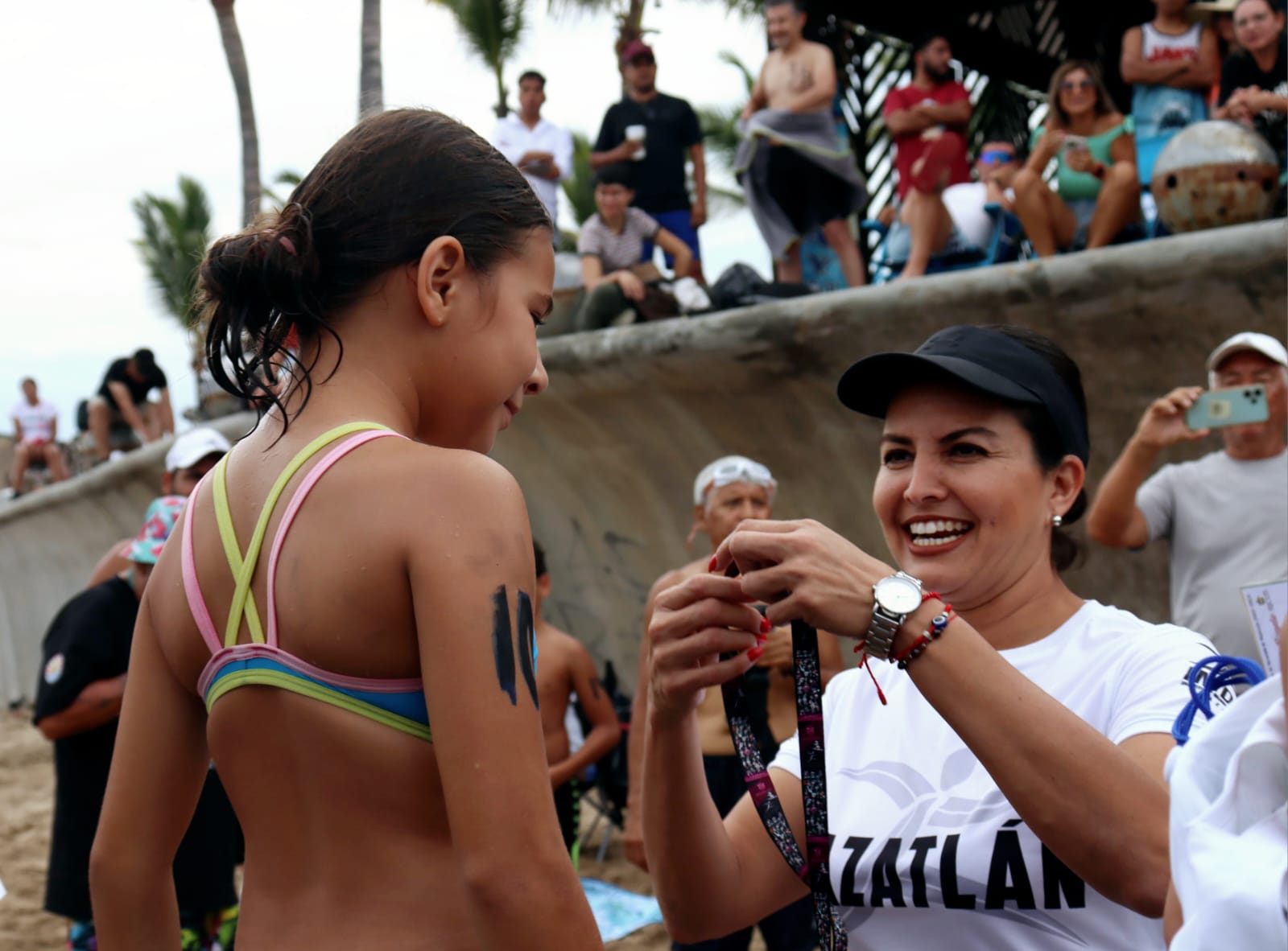 Mazatlán, Sinaloa.- La fusión de diferentes disciplinas en la playa gustó mucho a los niños participantes del «Corre, Nada y Diviértete», organizado por el Comité Municipal de Natación y el Instituto Municipal del Deporte Mazatlán, frente al Monumento al Pescador.