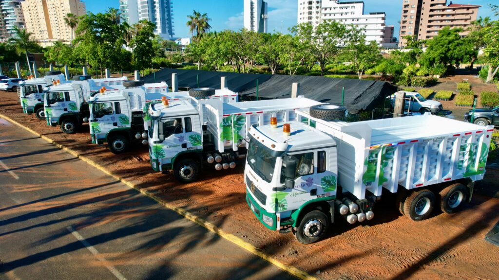 En esta primera etapa se entregó a la Directora de Servicios Públicos, Karla Camacho Guzmán y su personal, 2 motocicletas, 1 hidrolavadora, 5 camiones de volteo, 2 minicargadores, 10 desbrozadoras, 2 motosierras y 4 sopladoras.