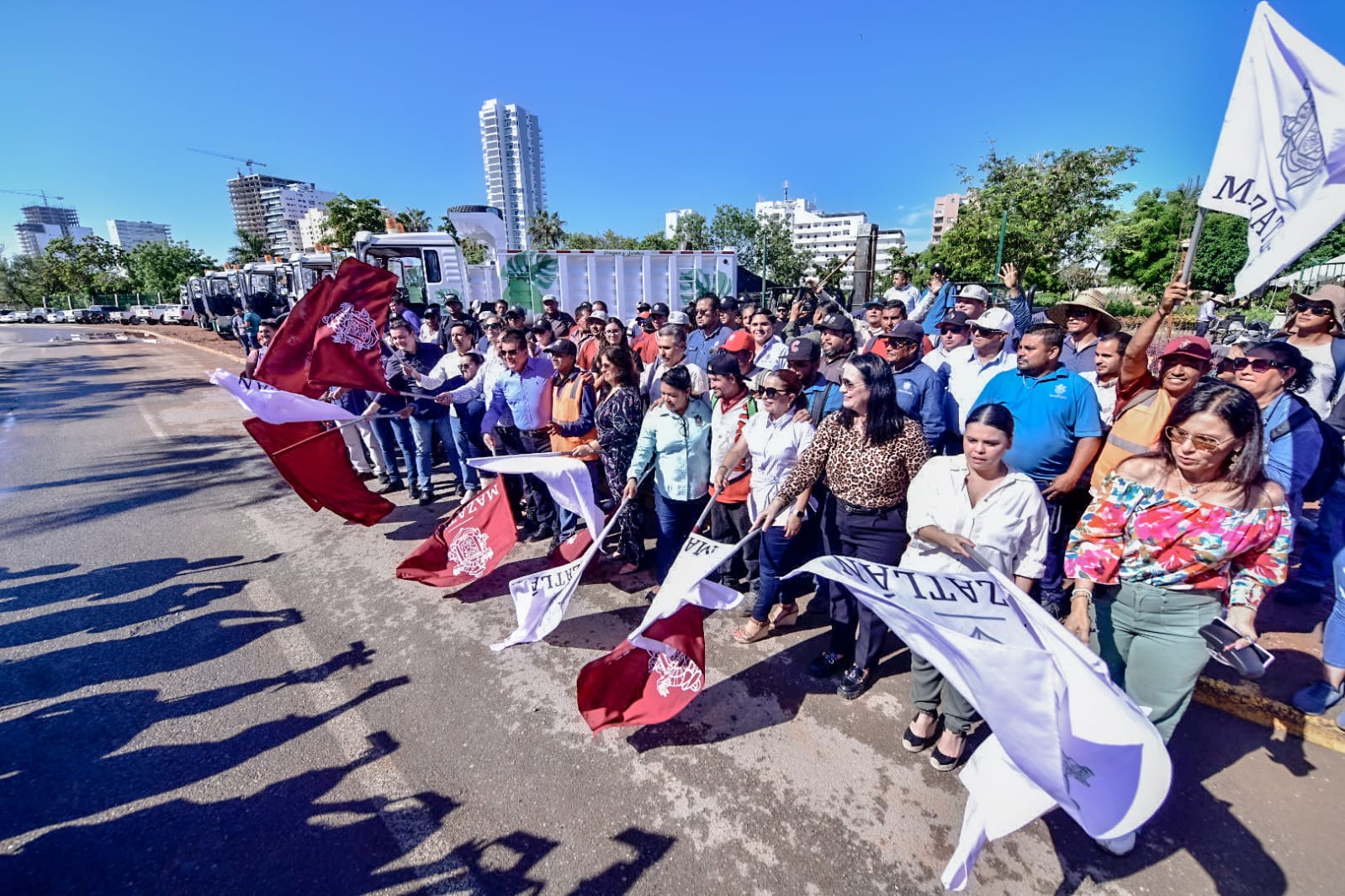 Mazatlán, Sinaloa.- Para ofrecer un trabajo más eficiente a la ciudadanía, la Dirección de Servicios Públicos Municipales refuerza a su personal con la entrega de nuevo equipamiento y camiones de volteo, mismos que contribuirán a mejorar la calidad de sus labores.